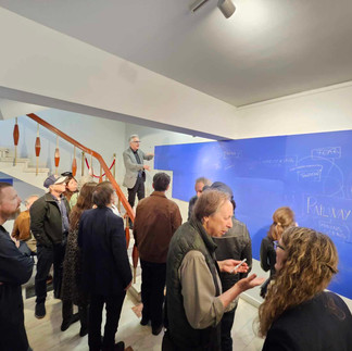 Central to the installation's interactive dimension is audience participation. Visitors are encouraged to contribute their personal reflections and associations of rail travel, enriching a collective textual artwork installed in the lobby space.