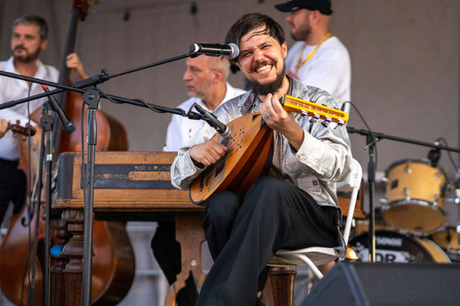 The whiz kid of Romanian traditional music, Simion Bogdan-Mihai, began to study the elusive “cobza” – a medieval Eastern European lute – when he was only 15 years old. Since then, he has collaborated with artists from various musical genres and has never seized to experiment with an age-old musical tradition, incorporating Ottoman, Jewish, Russian, Romani and Hungarian soundscapes, that was transmitted orally from generation to generation. In 2017, he formed a traditional fiddler band, Lăutarii de Mătase (The Silken Fiddlers), which soon has become one of the most sought-after and praised group of this kind in Romania. In 2021, they released their first album, entitled “Valahia in Demol” (“Wallachia in D minor”), followed two years later, in 2023, by their second album, entitled “Drum pavat cu bolovani” (“Road paved with boulders”), which went on to become one of the best-selling albums of that year. Bogdan finds inspiration in three musical traditions: Romanian folk music, the fiddle music of the Roma musicians, and the interwar Romanian pop music (waltzes, tangos and cabaret songs). The Silken Fiddlers are Nelu Răducanu (cymbalom), Mandi Pană (violin), Cornel Neacșu (accordion), Robert Adam-Szoltan (double bass), Cristi Adam (viola-bratsch) and Vicenzo Deacu (acoustic piano).